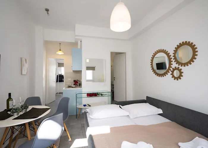 Beliggende 15 minutters kørsel til Panagia Tourliani-klosteret, tilbyder My White Studio Mykono Town Lejlighed ferielejlighed indkvartering med WiFi i hele ejendommen. Værelserne har en sofa, kaffe- og tefaciliteter, et opholdsområde og et fuldt udstyret køkken har kaffemaskiner/tekedler og et køleskab.